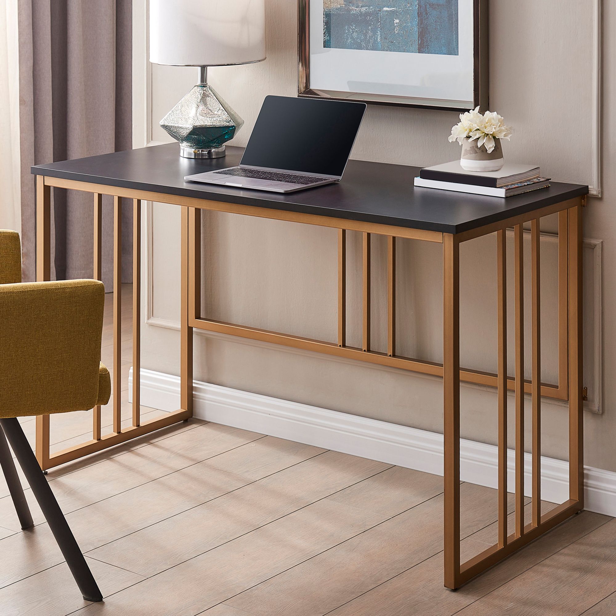 Adiel Black Wood Gold Metal Office Desk